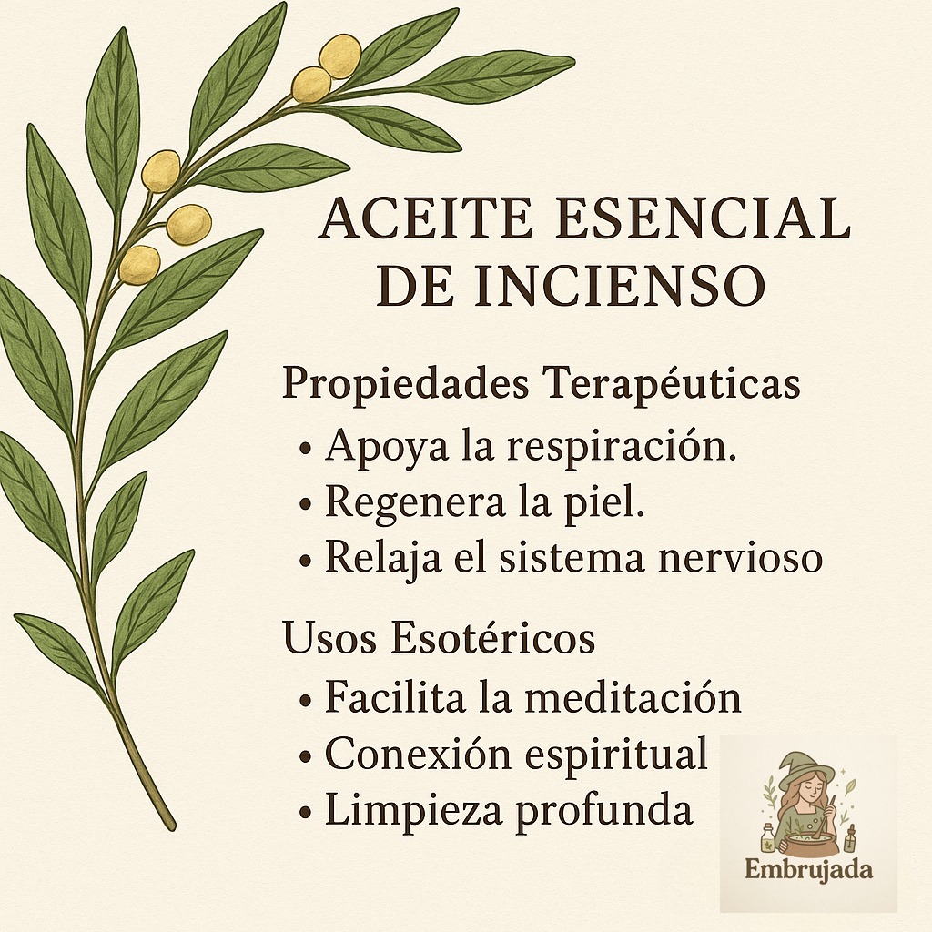 - El aceite de incienso abre caminos espirituales y favorece la conexión interior.