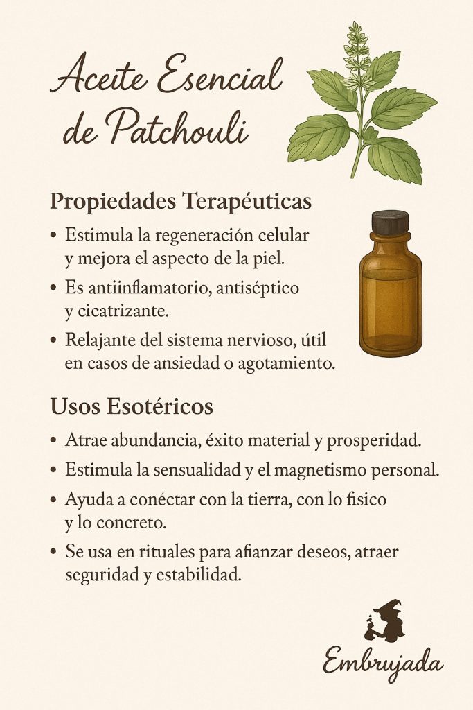 El aceite esencial de Patchouli nos conecta con lo concreto, lo material y lo sensual… y al mismo tiempo calma la mente y fortalece el cuerpo.