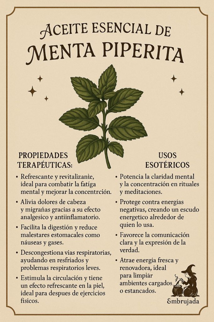 ¿Cansada de que el día te pese en la cabeza y el ánimo ande perdido? La menta piperita es la aliada ancestral que trae claridad, frescura y energía renovada. No solo es un bálsamo para el cuerpo —calma dolores, descongestiona y estimula— sino que también es una barrera mágica contra las malas vibras.